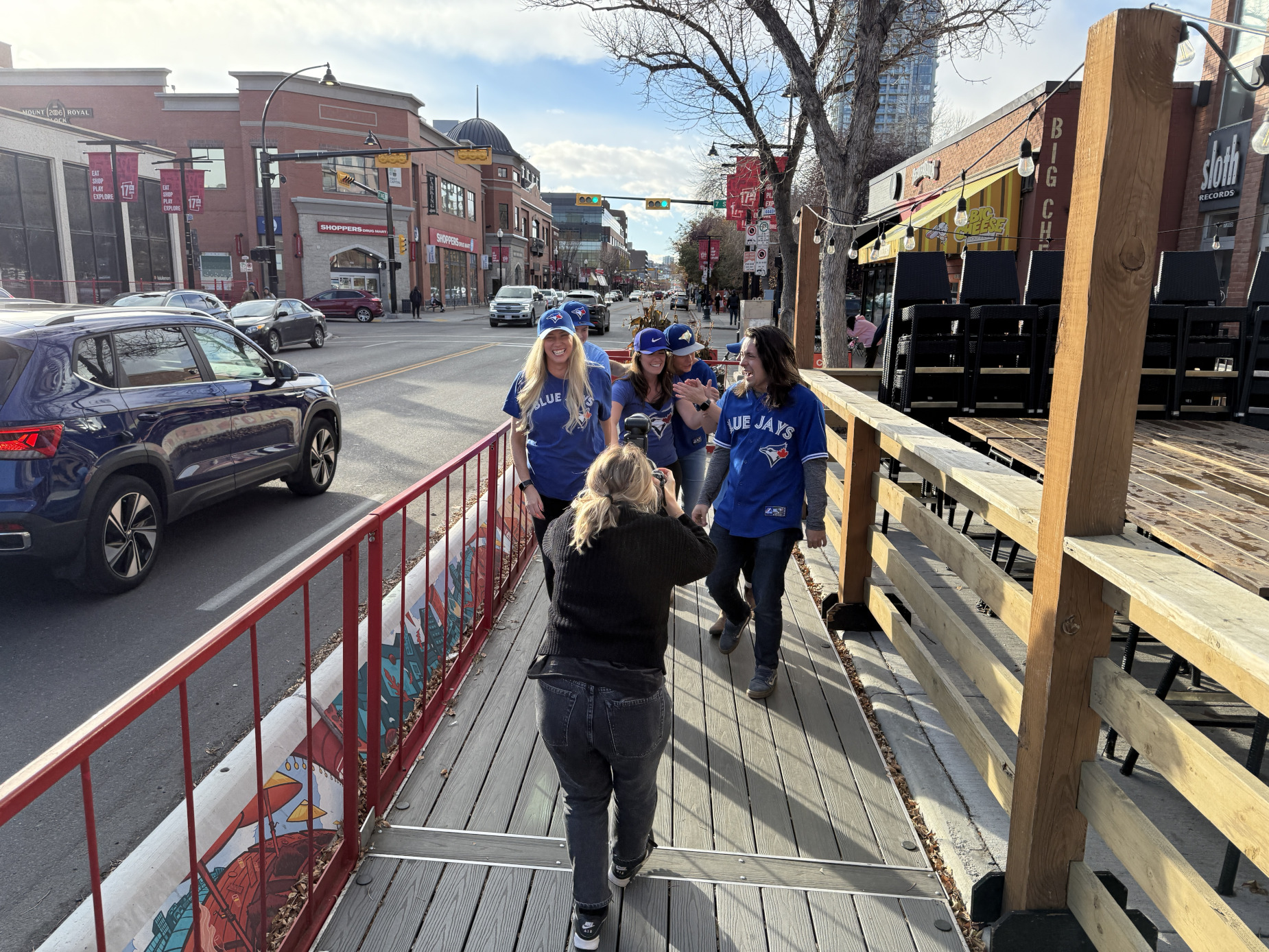 Jennifer> For me, Canadian fandom isn’t just loud; it’s loyal, it’s emotional, and often has a deep history. This film leans into that. It wasn’t about creating a big spectacle, but more about finding those honest little moments: a group of Calgarians skipping through downtown to a watch party, vintage Jays memorabilia passed down from grandparents, and groups gathering to cheer together all around the country. That’s the type of passion we captured.