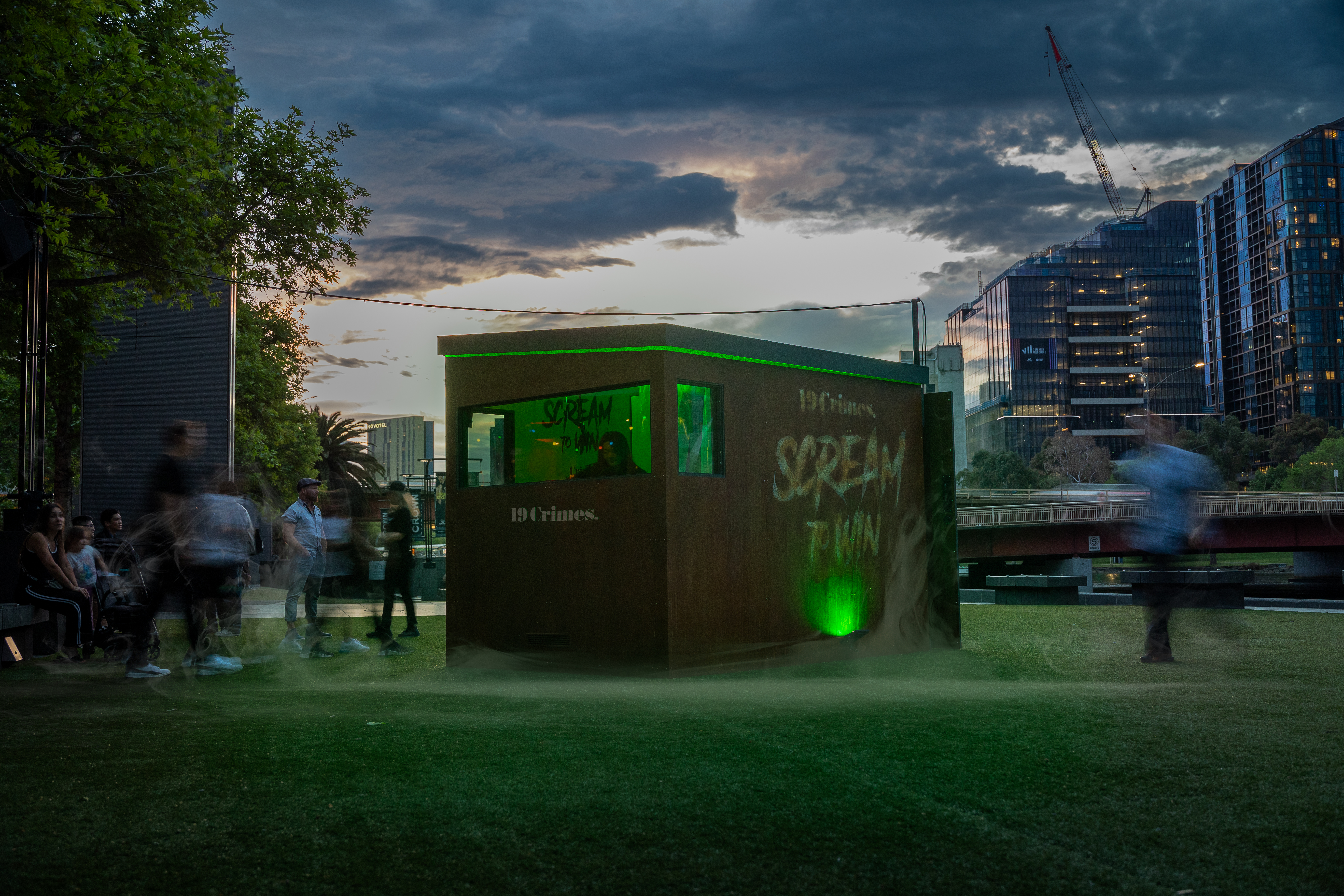Created by TWE X Splash and executed via Mango Communications, the competition launched with an ominous scream booth in the middle of Melbourne’s Crown River Walk over the weekend.