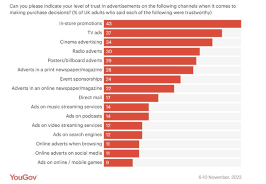Whilst regulation guides, steers and even restricts advertising, at Clearcast, we see it as a force for good: and one of the very foundations of Trust. One of the reasons why television has stood on higher ground than any other medium over the past 70 years, as you can see in the chart below.