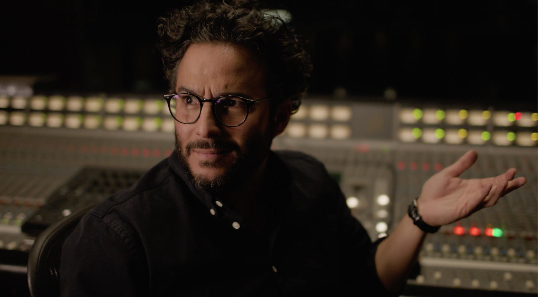 The shoot itself was fun but full. We had one day to shoot a 14-page script with one camera, which was… ambitious. We shot at Revolution Studios in Toronto, in a fairly tight studio space that had a screen above the control board where the VINCE interface could appear, and a window looking into the recording booth that I needed for the end of the film. There was a retro warmth to the room too, with its wood details fitting what I was looking for tonally.
