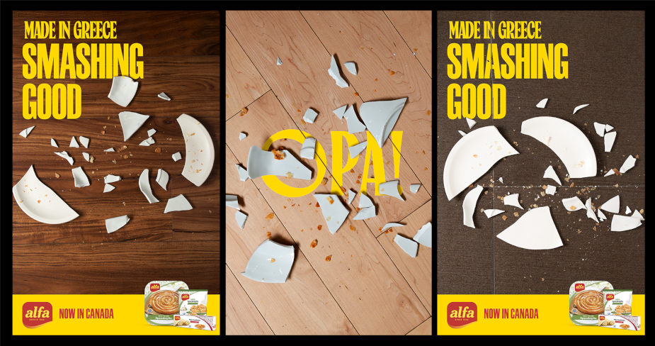 Alfa’s pastries are authentic. Made in Greece with fresh ingredients, they stand firmly within the purest Greek tradition. Inspired by a well-known Greek custom, celebrating by smashing plates, the Smashing Good campaign (Bon à tout casser) was born. By leaning into this festive tradition, the idea was to develop a humorous and memorable tone. The contrast is made even more striking when compared with the characters’ everyday reality in Greece. The TV campaign will first launch on connected TV in Quebec and Ontario.