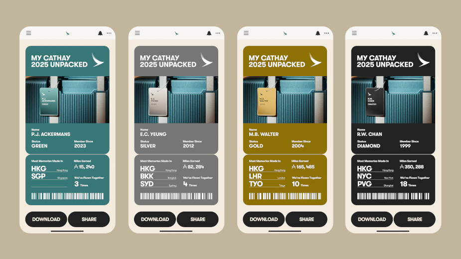 Cathay ‘Unpack Your 2025’ includes bite-sized cutdowns and member’s year in review summary, optimised for sharing across social platforms, complete with personalised boarding passes designed to reflect each member’s tier status, further personalising their complete journey.
