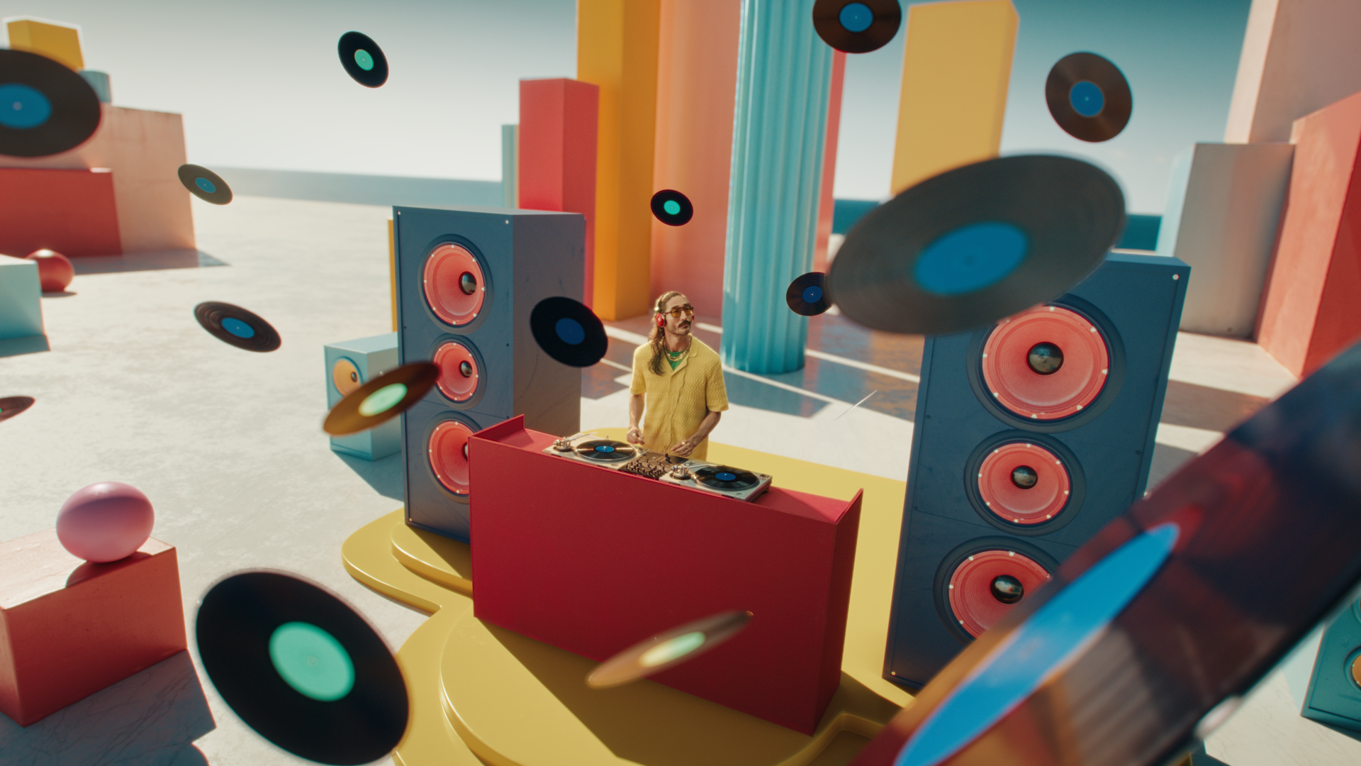 Before filming, four CGI environments were built, giving the VFX team a precise blueprint to seamlessly place the actors into imaginative, graphic worlds. Shot entirely on blue screen with a TechnoCrane, the production blends careful planning, creative technique, and a touch of magic.