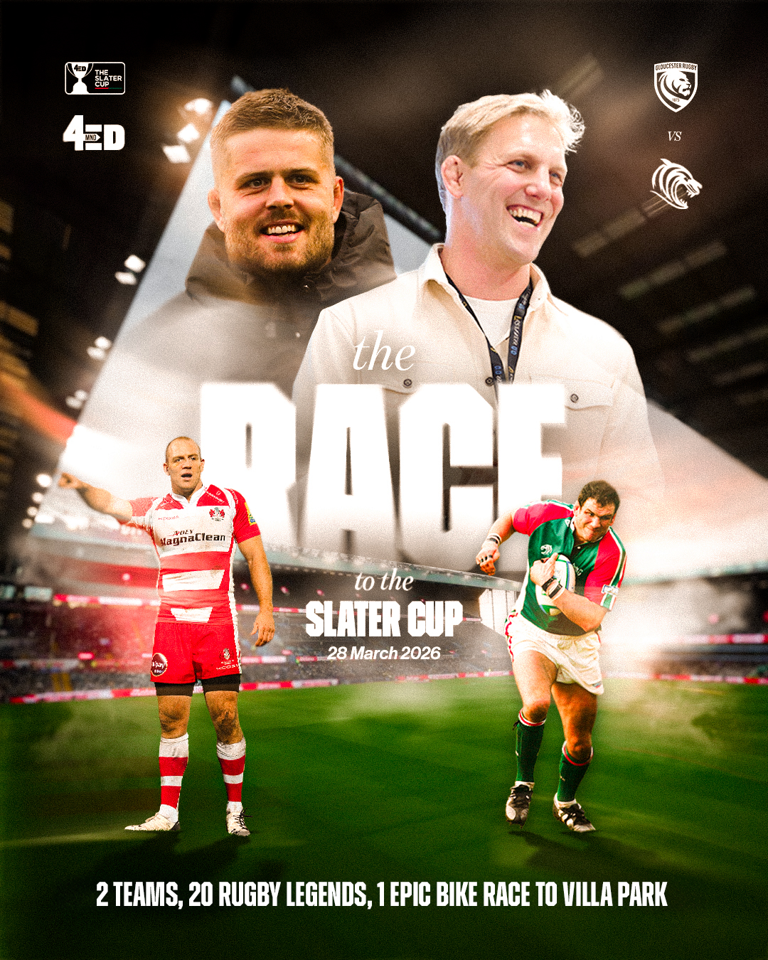 The Race to the Slater Cup teams will be captained by England legends Mike Tindall (Gloucester Rugby) and Martin Johnson CBE (Leicester Tigers) and made up of former players from both sides, to be announced over the coming weeks, who will race approximately 45 miles from their respective home stadiums (Kingsholm and Welford Road) to Villa Park, in a bid to arrive first.