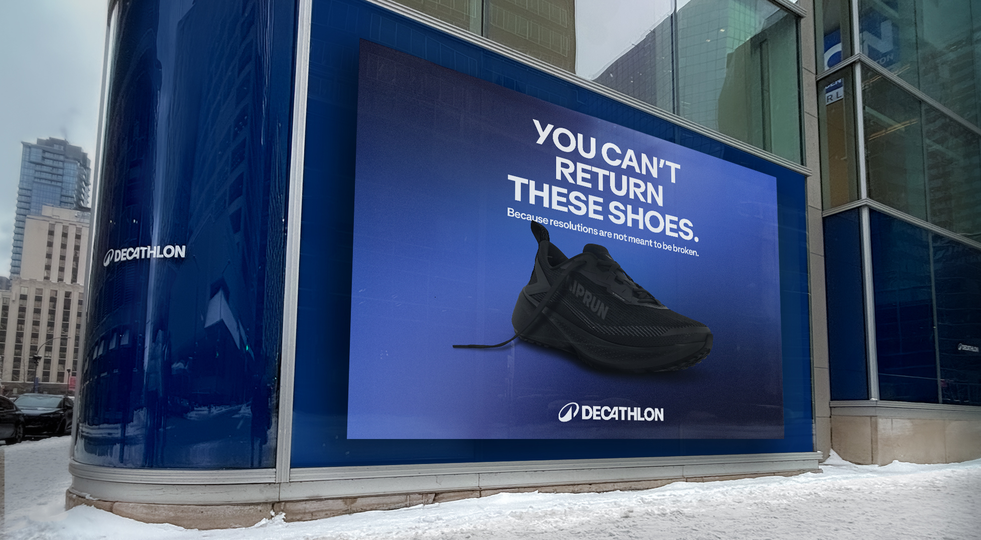 “We see that people want to start the year strong, but the temptation to quit is often too easy,” said Marie-Lou Blais, marketing and communications director at Decathlon. “Decathlon’s mission goes deeper than convenience as we genuinely care about our customers’ sustained well-being and their ability to commit to themselves. The unreturnable shoe is our playful way of intervening at a pivotal moment, turning a simple purchase into a powerful act of self-commitment, and we’re sweetening the deal with an advantageous point incentive.”