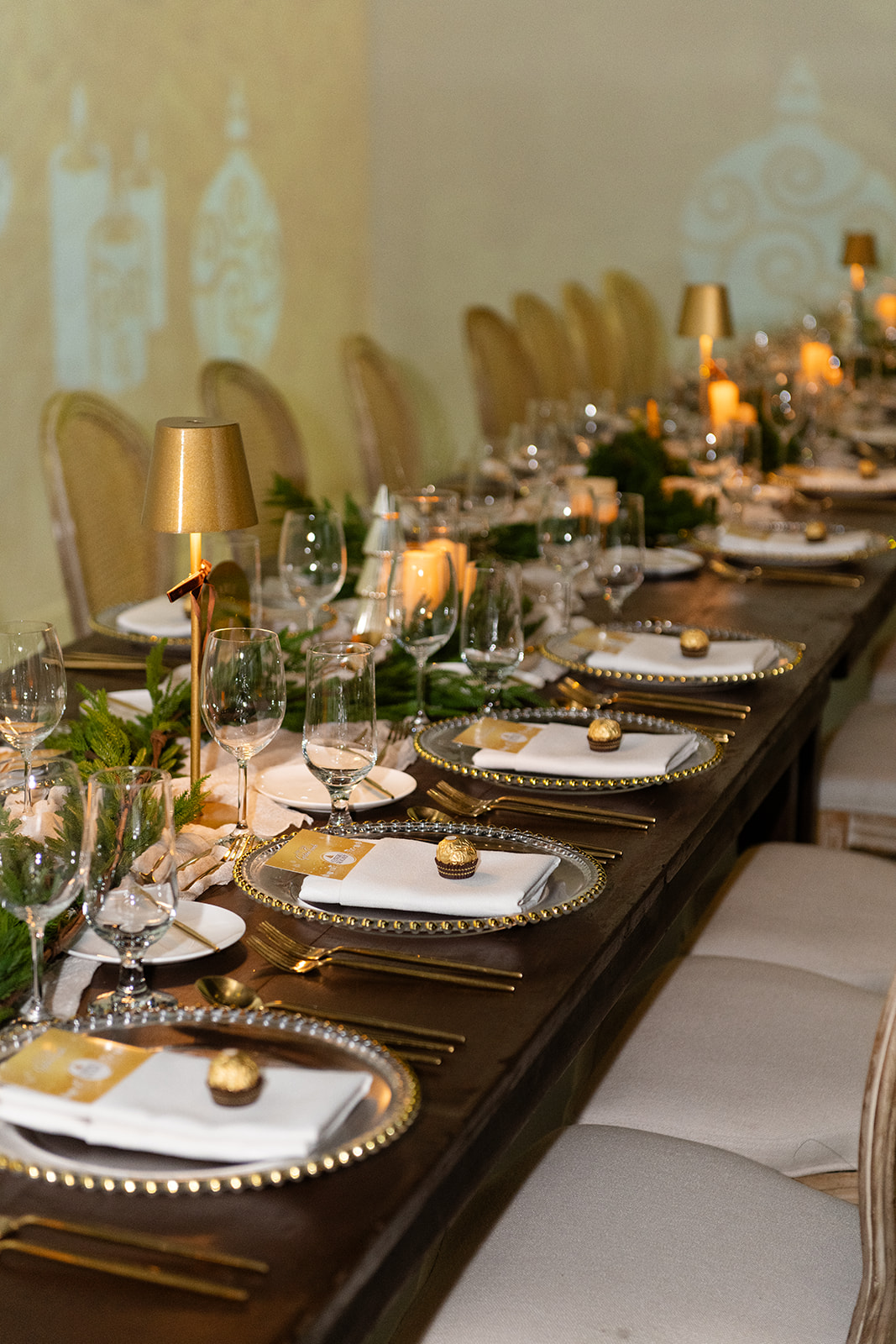 The evening continued as guests were guided into an immersive winter themed environment, transformed into a golden wonderland for the night. There, they enjoyed an Italian inspired three-course dinner surrounded by signature gold decor and festive ambiance. Guests left with curated gifts from the brand and memories to last a lifetime.
