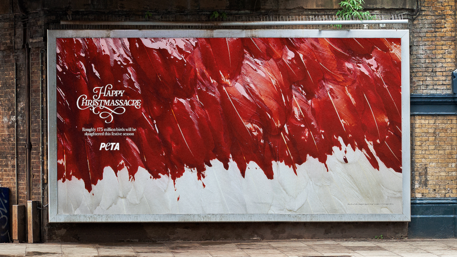 PETA, in partnership with advertising agency Grey London, is exposing the carnage behind the Christmas cheer with a bold new campaign, 'Happy Christmassacre', urging people to go vegan this festive season.