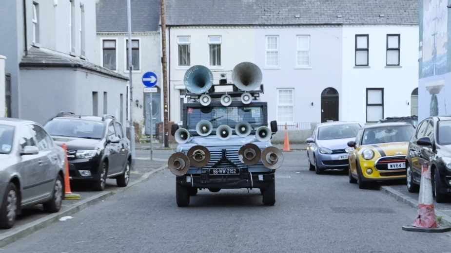 Through conversations with the band, we also wanted to nod to Belfast’s rave history. In the 90s, raves weren’t just parties — they were acts of resistance, dangerous but vital spaces where Catholics and Protestants came to be together and dance. That spirit is what fuels the scene of Jamie Lee driving the pimped-up Kneecap Land Rover across the city — a kind of rave pied piper, spreading the idea that art, music, and creativity can break down the metaphorical walls which are often stronger than the physical ones. Pent up anger and frustration are released through dance instead of turning into hate.
