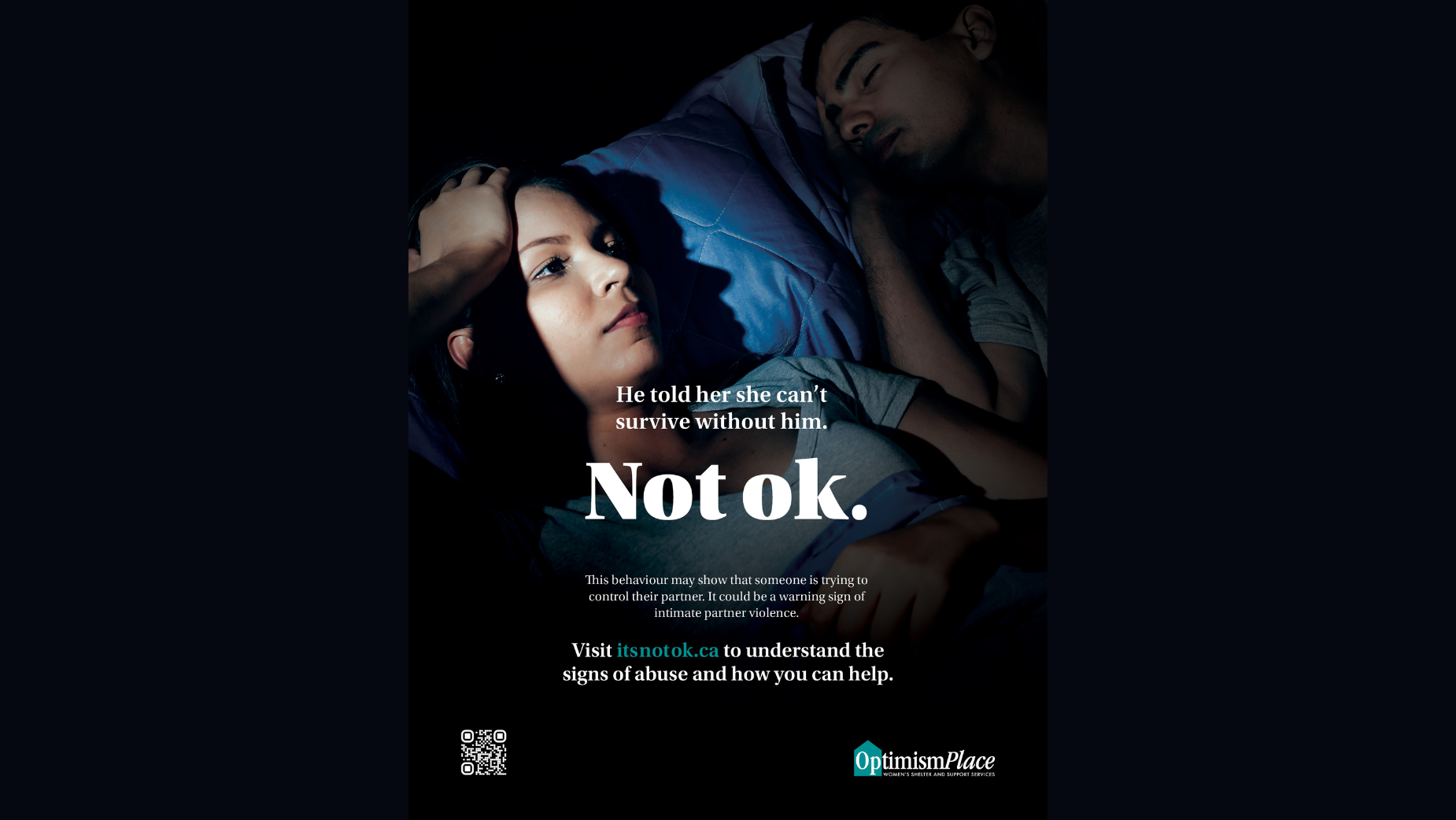 What’s really interesting about Optimism Place is that they're not just a shelter, they provide a range of services. So if you're a woman that has noticed some of these signs of coercion and control, there are programmes that you can engage in to get help and navigate the situation. You don't have to leave, you don't have to go into shelter to get support — that was really important for the campaign as well.