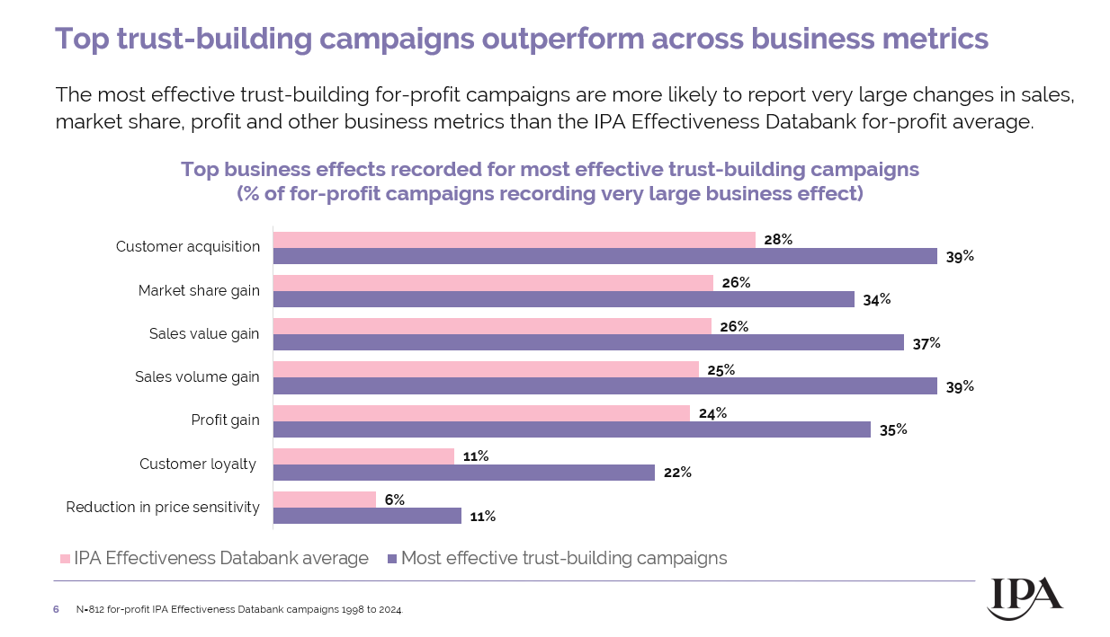 o Sales volume gain: 39% for the most effective trust-building campaigns vs 25% for the IPA Effectiveness Databank Average