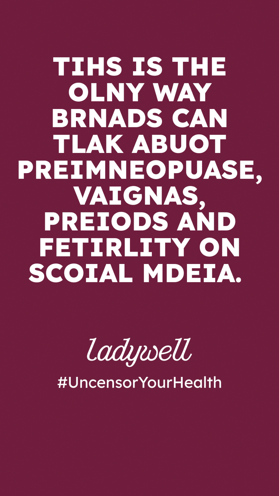 The campaign was born out of frustration of sexual and reproductive health information being suppressed on major tech platforms. An alarming 84% of ads related to women's health get pulled on social media and a staggering 90% of women’s health orgs get censored for using medical and anatomically correct terms like menopause, perimenopause, miscarriage, discharge, Polycystic Ovary Syndrome, vagina, breast, and many more.