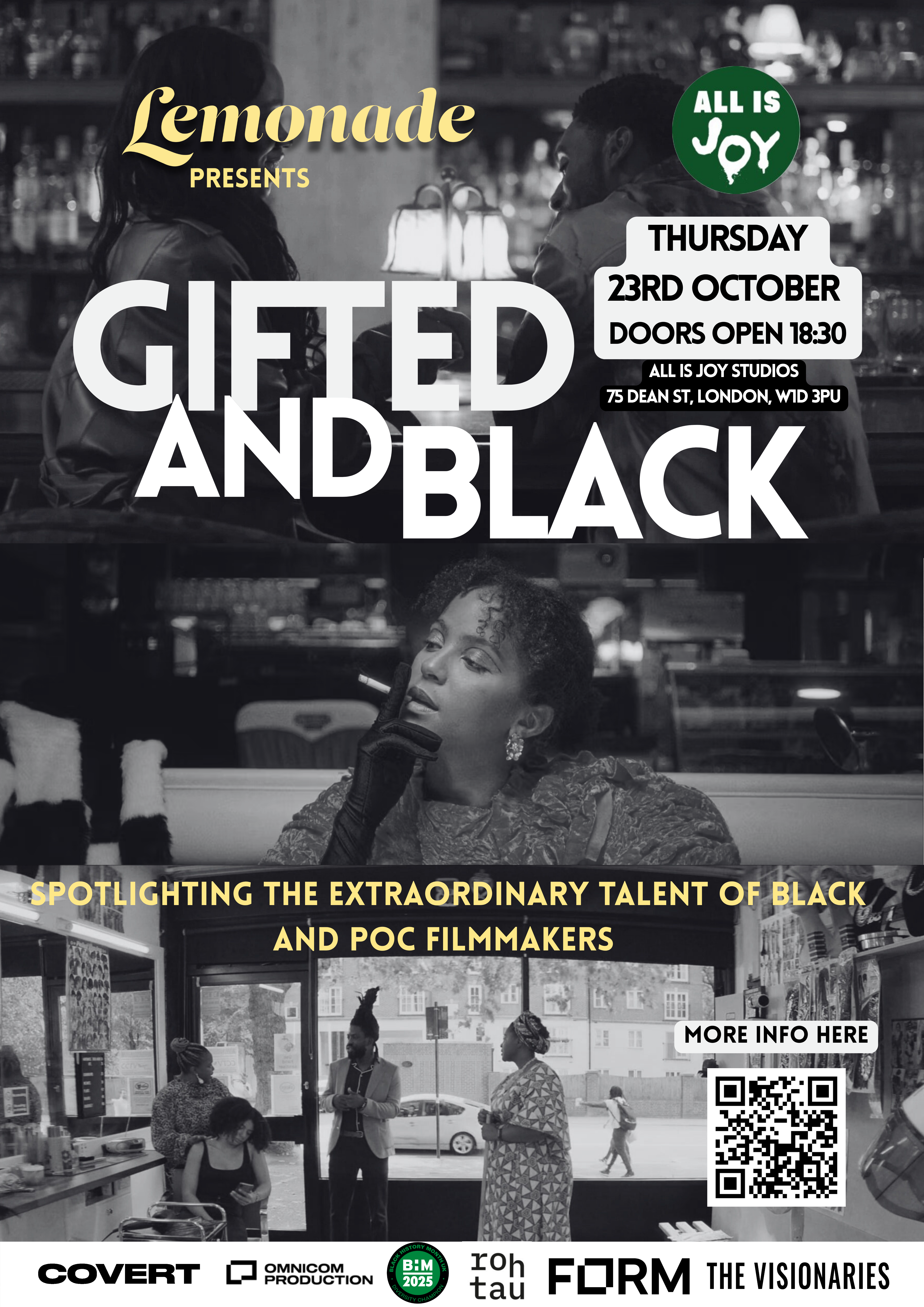 This October, Lemonade Presents is set to light up Soho once again with Gifted & Black - an evening where film, art, music and industry networking collide.