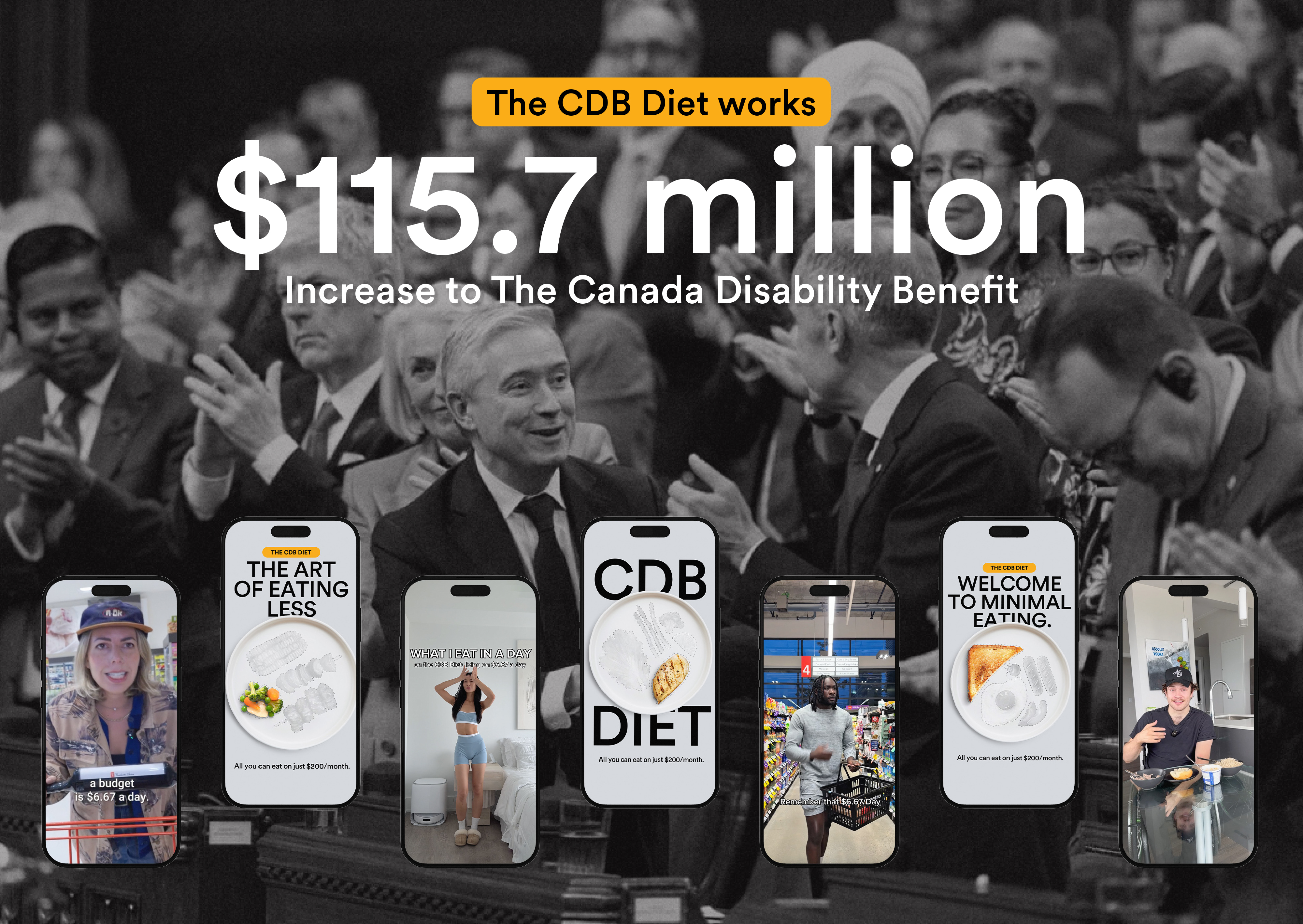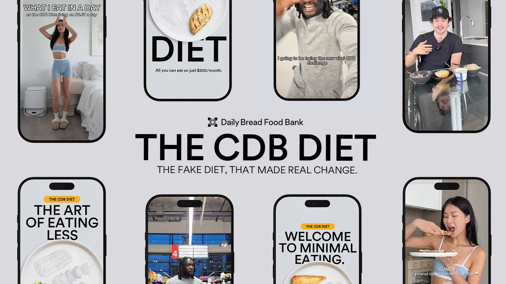 Through Leo Toronto and Leo Design’s campaign, in partnership with Daily Bread (Toronto-based charity that works to eliminate food insecurity and end poverty) they exposed the harsh reality of what the CDB currently provides, just $6.67 a day. By partnering with fitness, food, and lifestyle influencers, launched The CDB Diet, a faux wellness trend that revealed the impossibility of living on such a limited amount. The campaign ignited national outrage, sparking conversations that reached the halls of government.