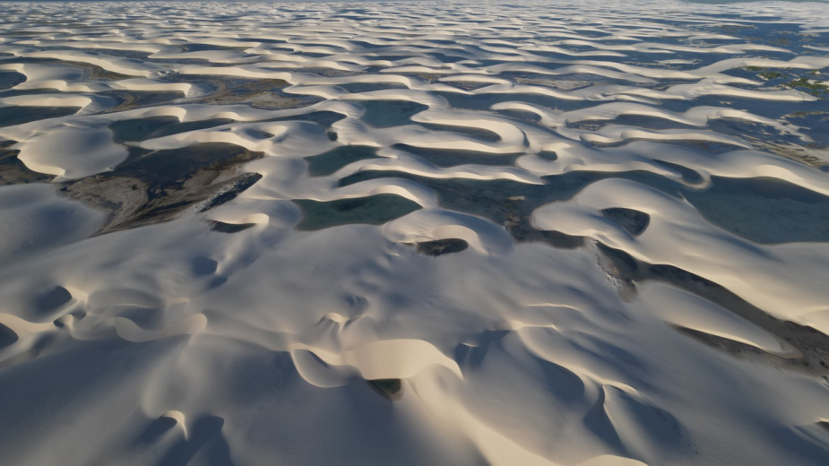 Ocean Films> Lençóis Maranhenses in Brazil is a unique geological phenomenon - the world's only extensive dune field with lagoons formed by rainwater. The landscape is in constant flux, sculpted by the wind. This dynamic environment means every shot is original, offering a rich and ever-changing palette of shapes and textures.