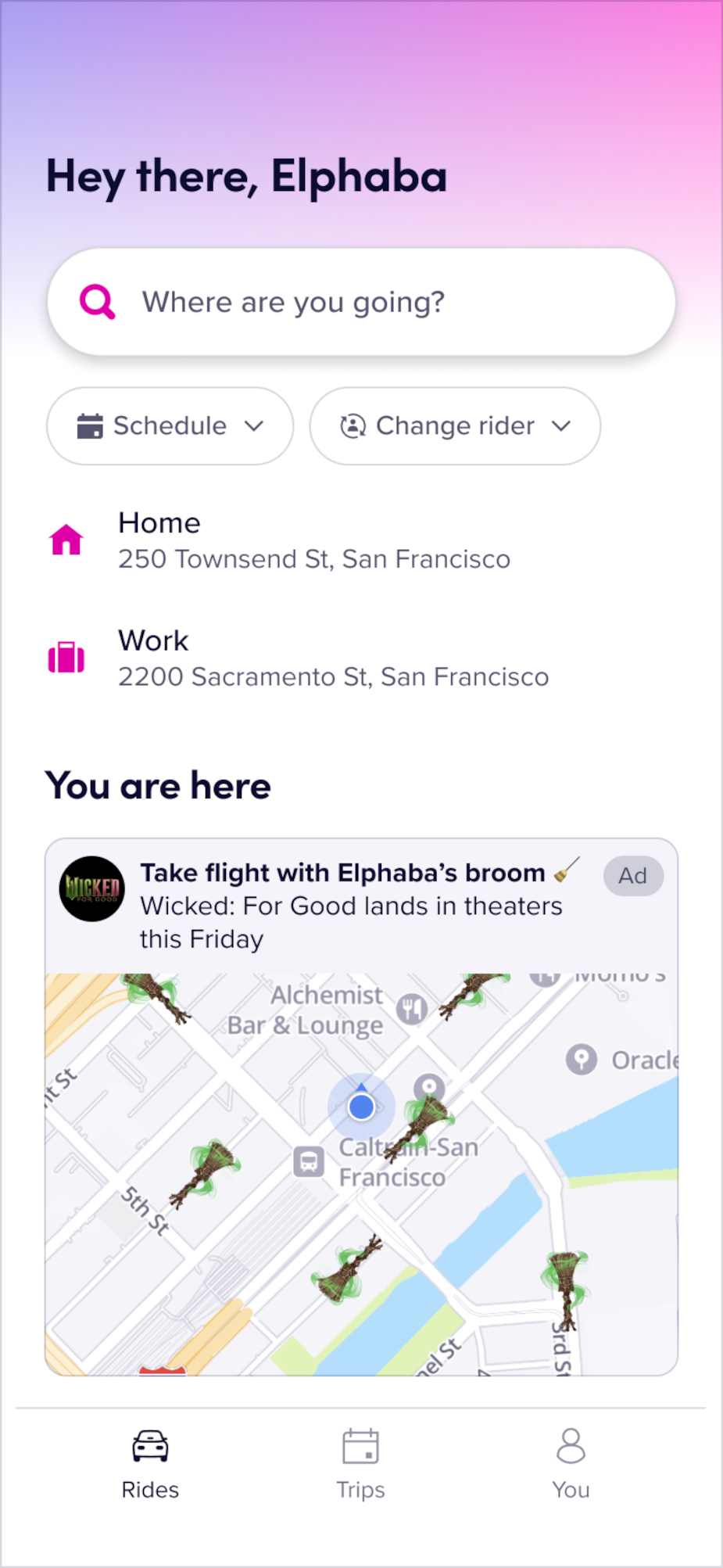Together, Lyft and Wicked: For Good are creating a seamless journey from first ad impression to the final curtain with the goal of helping fans everywhere feel the magic.