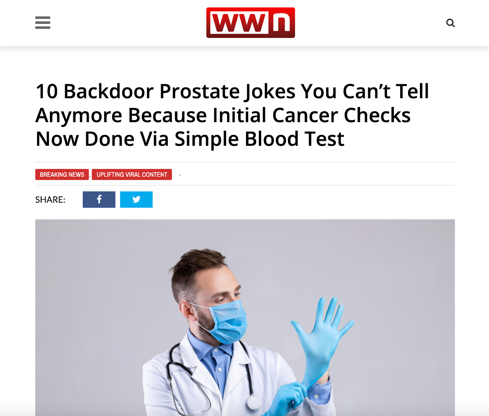A collaboration with Waterford Whispers also focused on the lost humour caused by the PSA blood test, with an article that lists 10 Jokes that can no longer be told thanks to the changes in the nature of the check.