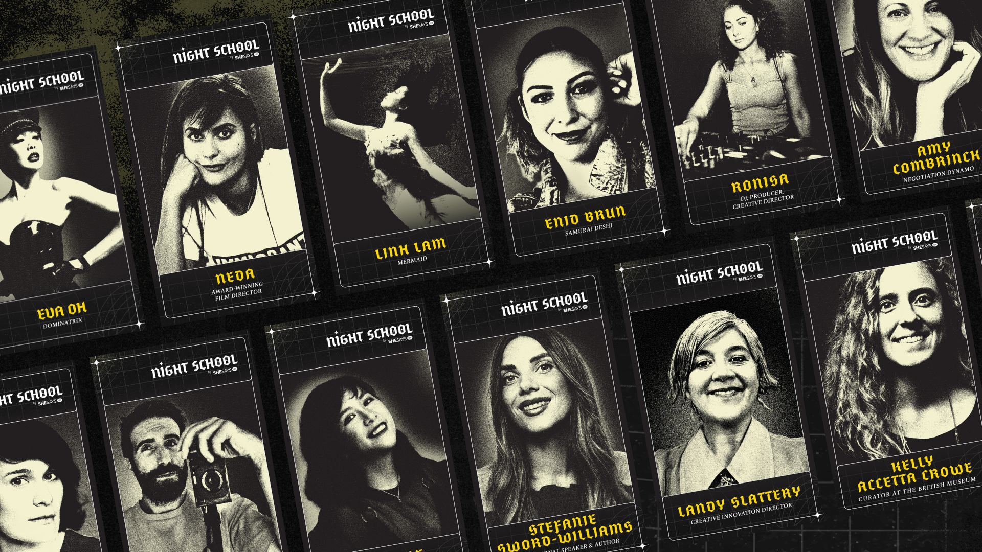 Night School is a short-form online content series created by SheSays, designed to help gain the skills, confidence, and tools for people, at all stages of their career, to thrive in the creative realm. The four-week learning programme will feature fifteen bite-sized, pre-recorded lessons released each week (Mon- Thurs) via SheSays LinkedIn. Each lesson will come with a worksheet so participants to practice quickly their skills. At the end of every week, teachers will host a live Q&A to ensure any queries are answered. No laborious lectures, no confusing corporate jargon, just a potent dose of wisdom, delivered with a touch of magic. On October 28th, the programme will mark its in-person graduation at VaynerMedia’s London office.