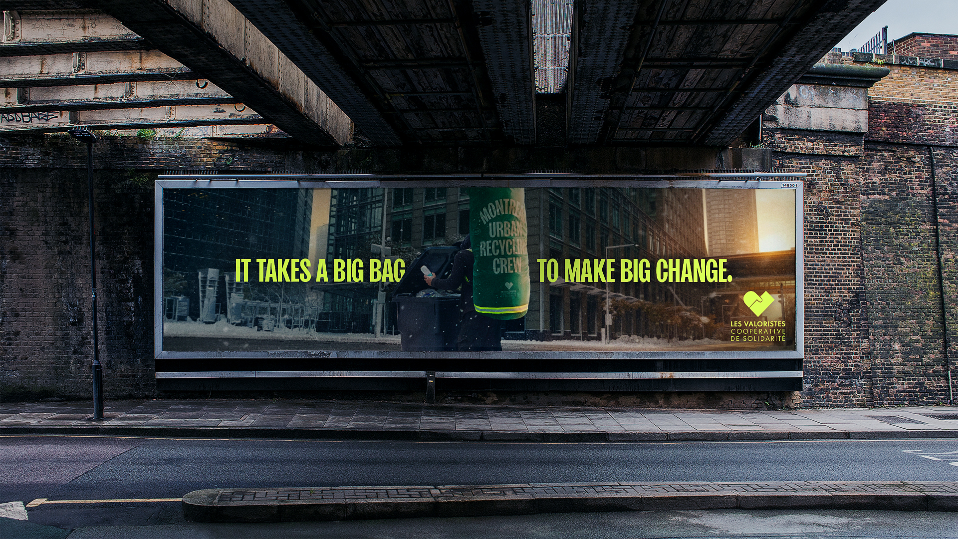 Thankfully, Gabrielle is a really talented street photographer, so she quickly found the angles we needed for the OOH. We had really bold, simple lines, but we knew it was a subject with lots of layers, so we needed to convey a lot of information in the visuals. We also needed to show off the bag but also the binner doing his work. And, once we had our selects, the team at Shoot worked overtime on retouching until the images were perfect.