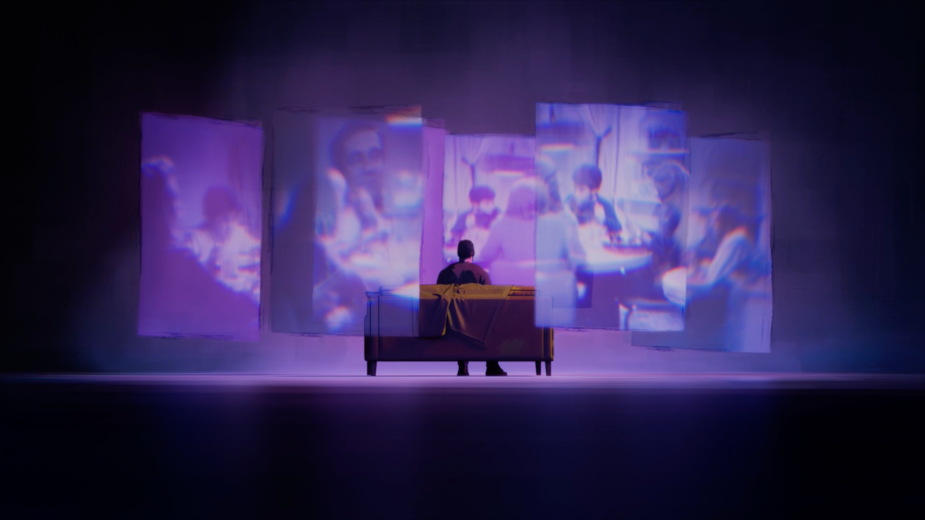 “Each Ibogaine sequence has something tangible and relatable at its core. From this foundation, each recollection diverges into its own accented and unique perspective. For DJ Shipley's sequence, director Gergely Wootsch explored multiple interiors and rooms that signified a claustrophobic, layered set of memories that DJ navigates. In Matty Roberts' section, director Steve Small explored a boundless expanse where Matty is repeatedly and viscerally confronted by himself, with no place to escape from his innermost reflection. For the sequences featuring Marcus Capone, I was struck by the juxtaposition of a confident, robust individual describing his utter helplessness as he tumbles through an unknown chaos, assailed by swarms of family photos from all sides. His turmoil peaks in an abyssal void when he confronts a literal wall made of his memories, a barrier he can't overcome. But in each place of desperation, clarity and understanding emerge and, ultimately, some release,” said Philip Hunt animation director on OPENING and ABYSS.