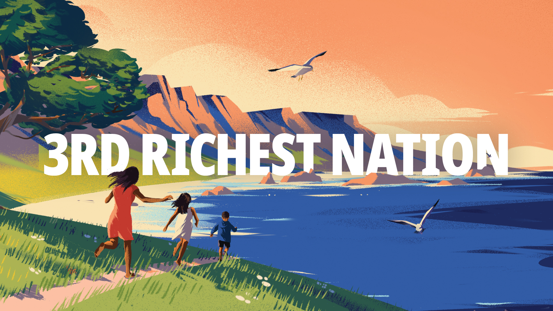 Running across TV, ambient outdoor, and online, her speech is a confident declaration of victory, explaining that eradicating childhood violence has made them the third richest country on Earth.