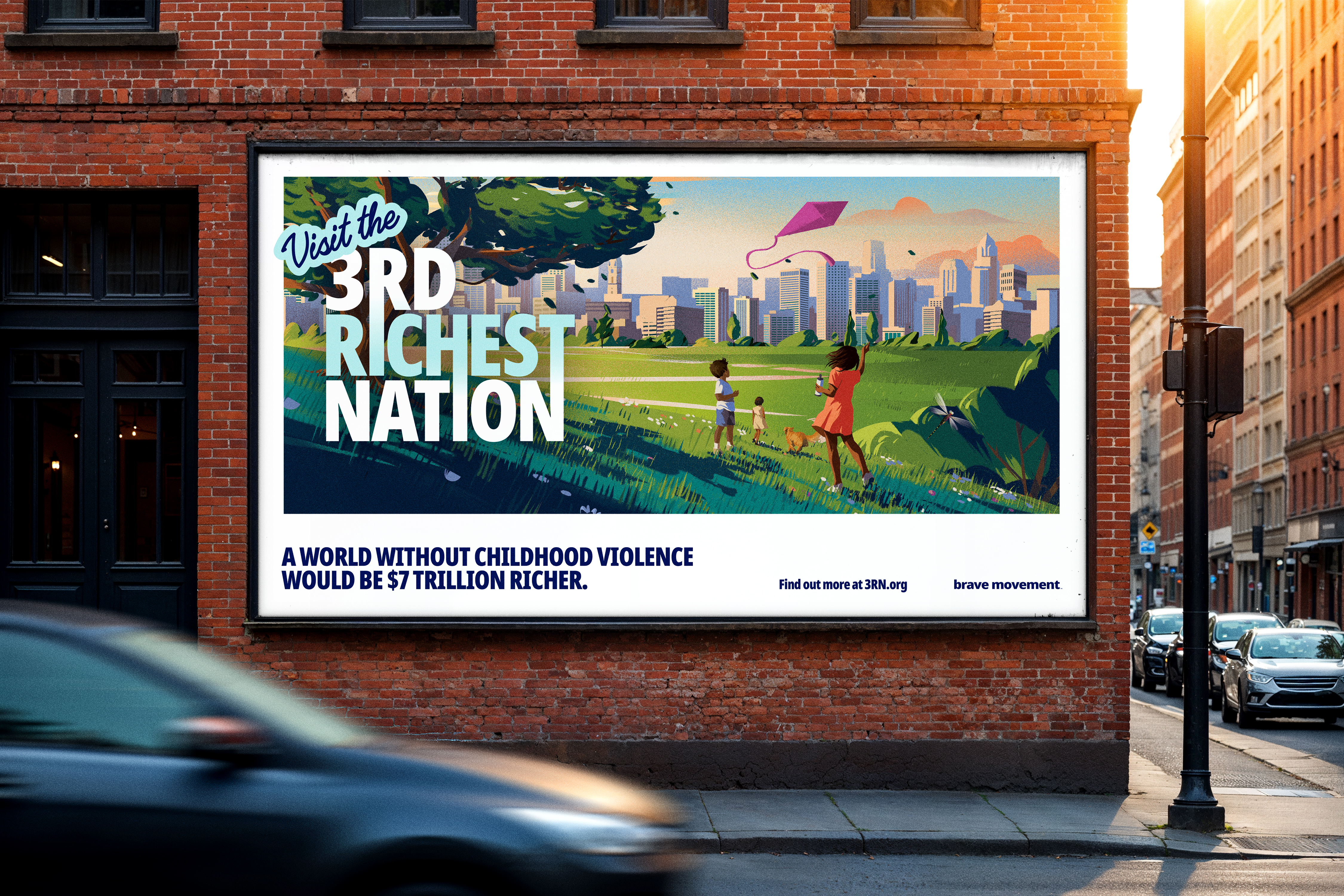 Louis Lunts, partner and managing director at cummins&partnersNYC, said, “The $7 trillion cost of childhood violence is one of those rare insights that gets the mind racing with big ideas. It’s been a joy and a privilege to work with The Brave Movement to bring those ideas to life. The 3rd Richest Nation may be fictional, but we expect it to become a very real force for change.”