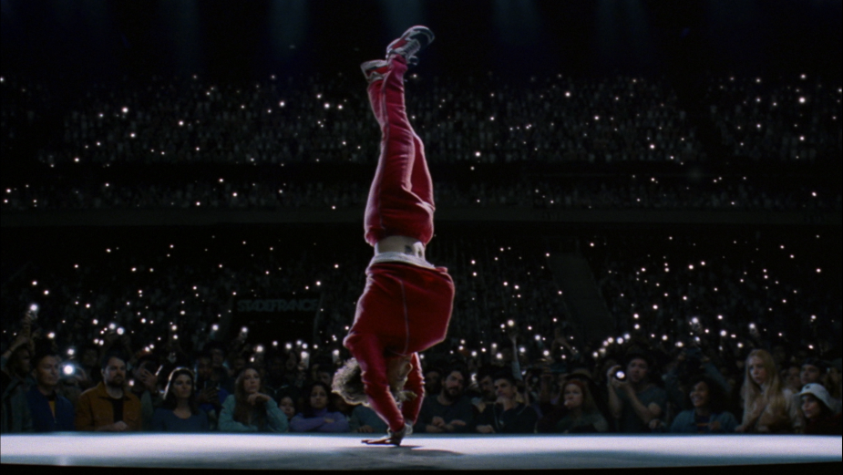 RÉALITÉ> The first thing we wanted to achieve was to show breakdance in a new way. We wanted the audience to feel it as an Olympic discipline, focusing on the beauty of the movement as you would, for example, for a film about artistic gymnastics. This guided most of our visual decisions during the process. The second crucial thing we wanted to achieve was to establish a solid link between the performance of the dancer and the rise of the stadium.