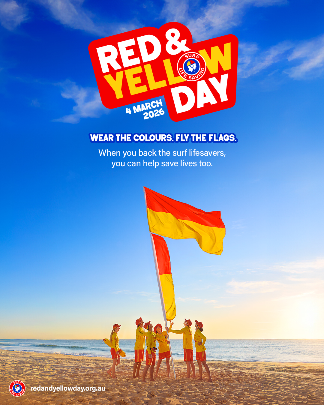 With one month to go until the inaugural 'Red & Yellow Day', Surf Life Saving Australia are inviting businesses, schools, surf life saving clubs, communities, and members of the public to wear red or yellow, host a fundraiser, and proudly fly the flags, in support of the world’s largest volunteer movement.