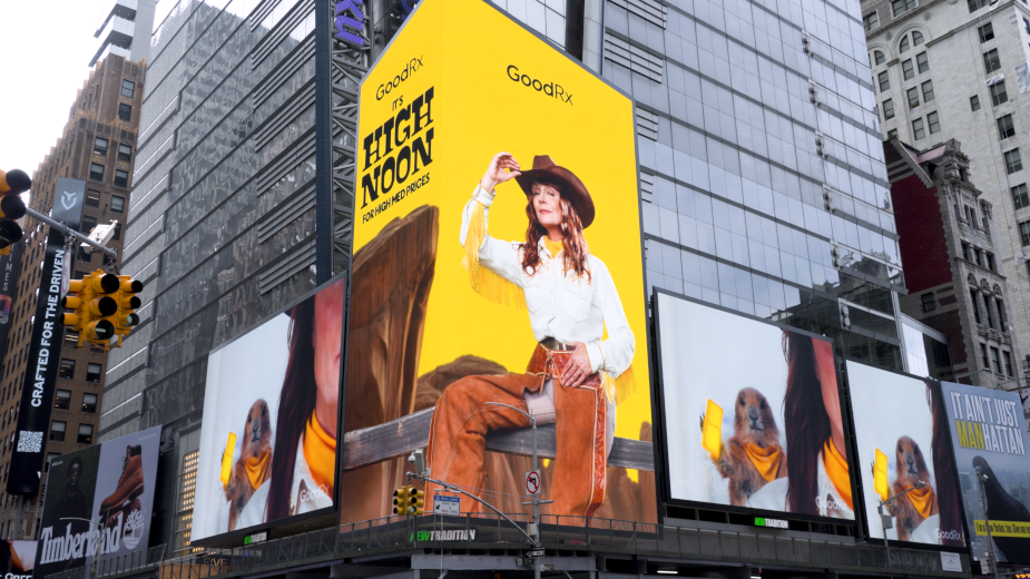 The result is a fully integrated platform kicking off with a 60-second hero film that introduces the Wrangler and her sidekick Dusty Pete in an everyday pharmacy, leaning into the Wild West metaphor to dramatise the confusion of prescription costs before showing how GoodRx helps rein it in. The broader rollout is currently extending across cutdowns, bespoke social content, radio, and OOH — capped by a full Times Square station domination and a live appearance by The Savings Wrangler on Good Morning America.