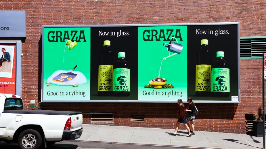 In just three years, Olive oil brand Graza has become one of its category's most recognisable players – in part due to its distinctive squeezy-bottle packaging. But now, the brand has launched glass bottle versions of its ‘Drizzle’ and ‘Sizzle’ oils, and a first-ever OOH campaign to show them off to the world.