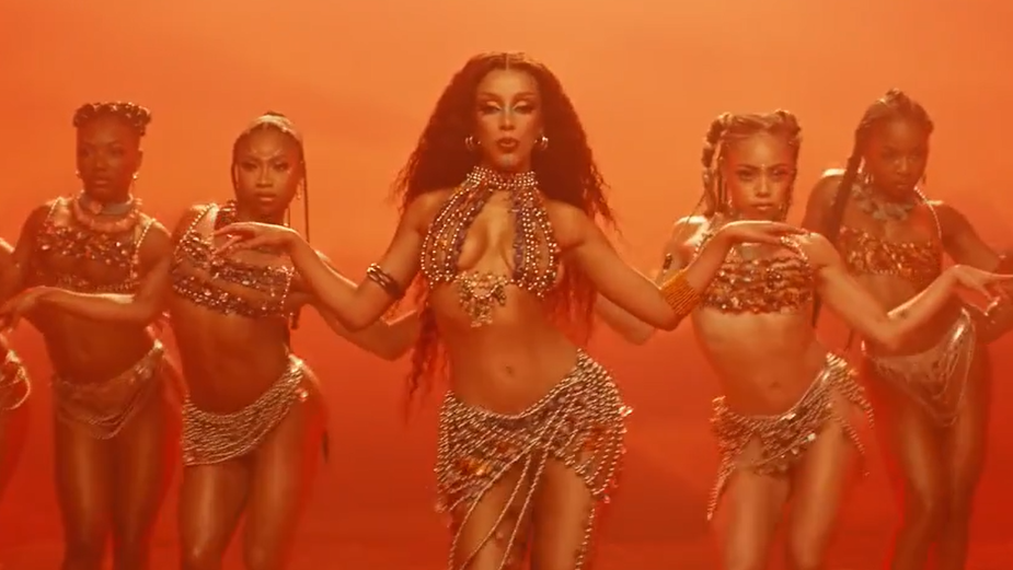 The video sees Doja team up with singer and dancer Teyana Taylor and model Guetcha to celebrate divine femininity and sensuality. Teyana Taylor stars as African queen of a mythical society that is warned of men plotting to steal her throne. In a bid to distract the scheming men, Teyana conjures Doja Cat, who is adorned in an opulent Afrofuturistic costume, to dance sensually for her male audience.