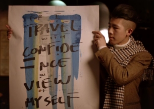 Located at London’s oldest coffee house, Jamaica Wine House, the online spot shows the bloggers catching up with each other over coffee talking about their different passions, while Lulat systematically creates colourful pieces of art. One artwork reads, “I seek to inspire”, while another reads; “Outwards I see inwards the laughter of love.”