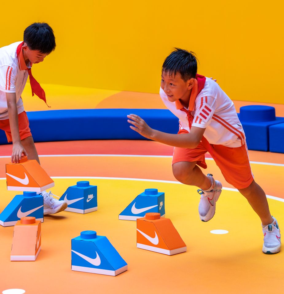 Guo> This summer, LEGO and Nike kicked off a global multi-year partnership with a series of immersive experiences and co-branded products designed to inspire kids everywhere to embrace both active and creative play. And this playground in a Shanghai primary school is one of the very first chapters of that collaboration.