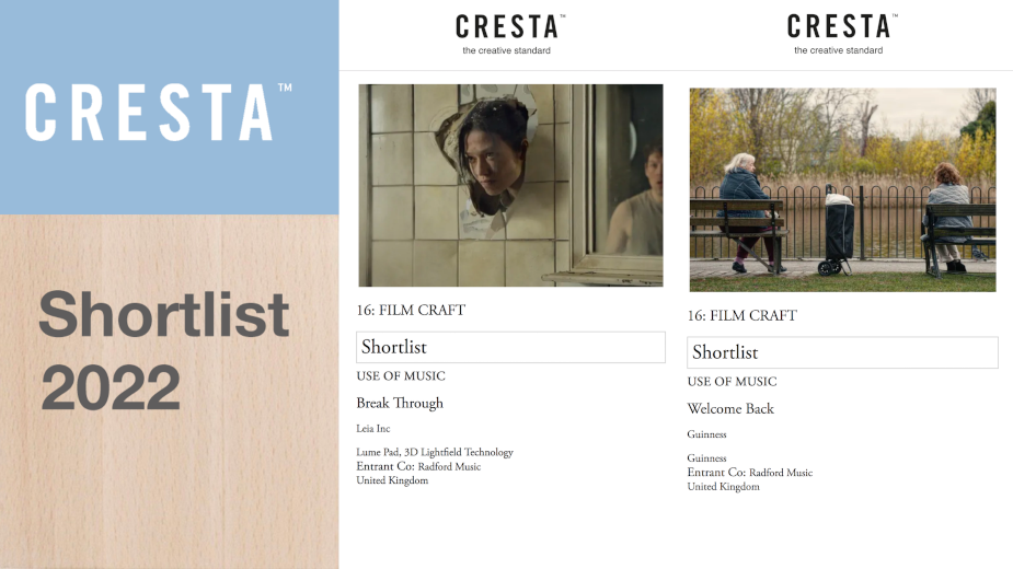 Radford Music are delighted to have been shortlisted for two different pieces of works in the Cresta 2022 Awards.