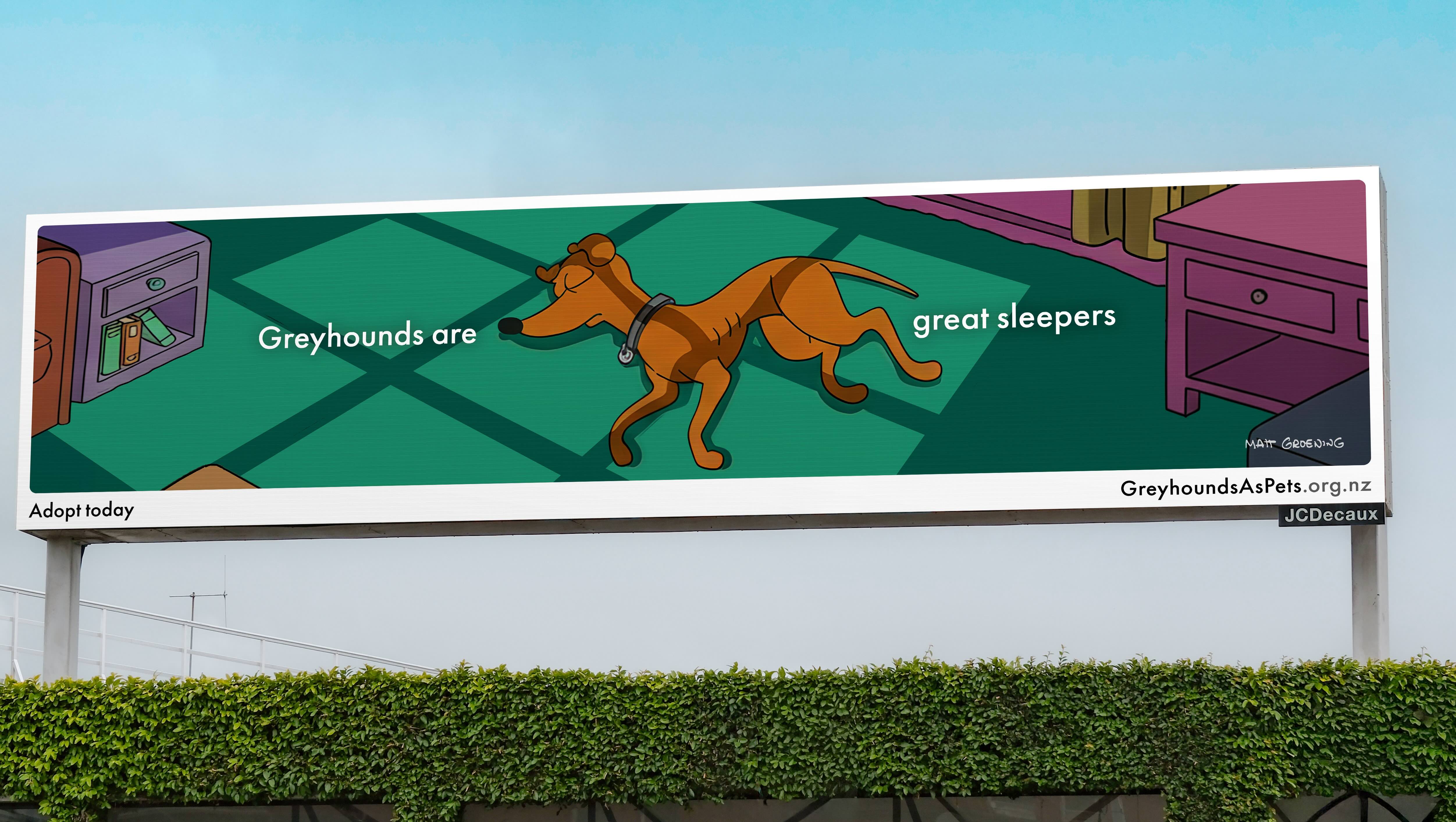 To accelerate awareness and drive adoption, The Simpsons have granted New Zealand the use of scenes featuring one of the world’s most recognisable greyhounds: Santa’s little helper. Across 36 years of episodes, the selected scenes spotlight the traits that make greyhounds exceptional companions -- their gentle, loyal, and low-maintenance nature, and their ability to bring joy into any home.