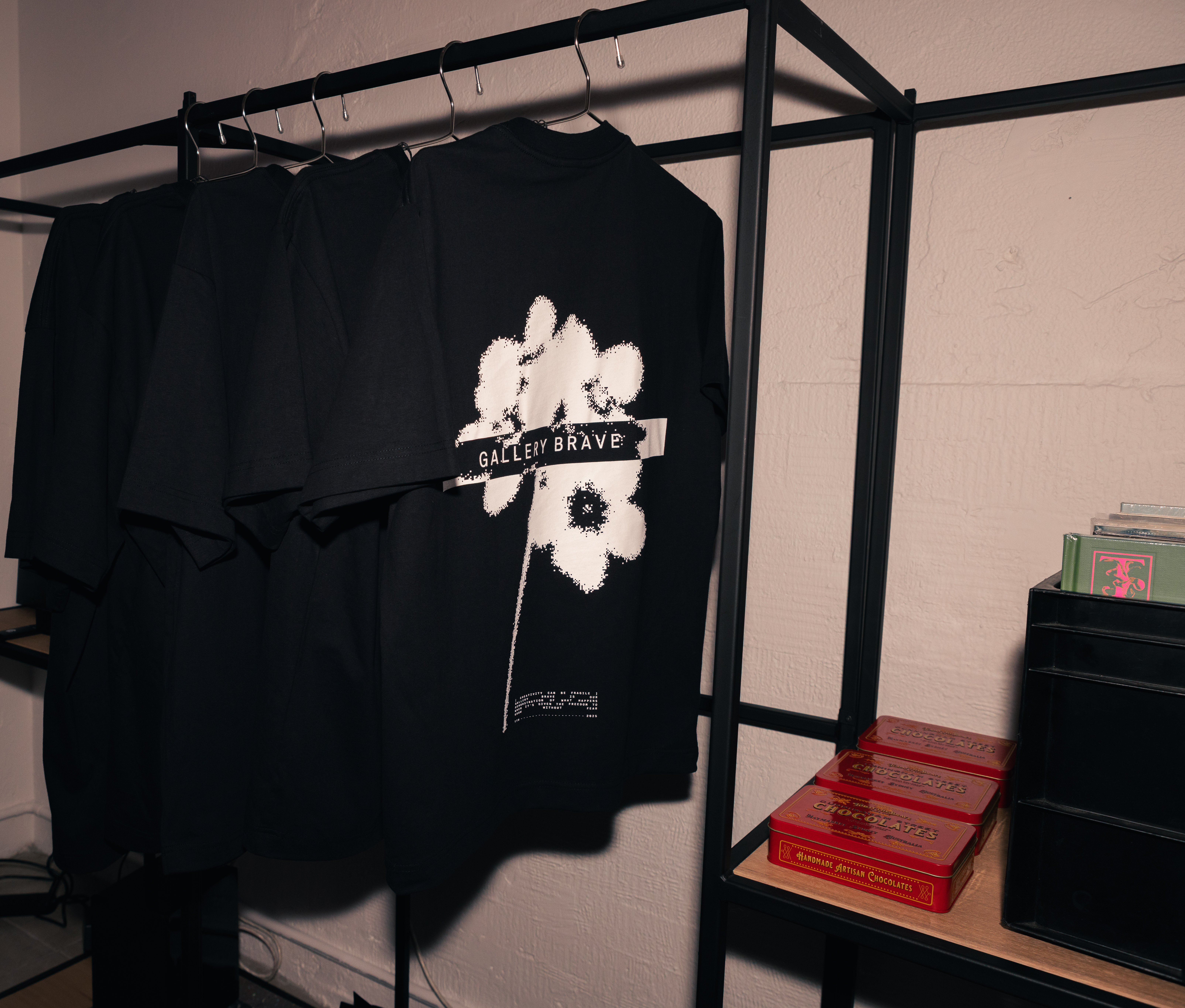 Launching with an exhibition of this particular series – each piece of which was for sale – was “not by chance”. Vinyl is “a big part of our agency culture,” Jaimes said, and a way for “the first show to connect to the agency and make it a bit more personal.” The agency was selling a curated selection of vinyls on the night, in addition to ‘first edition’ Gallery Brave t-shirts.
