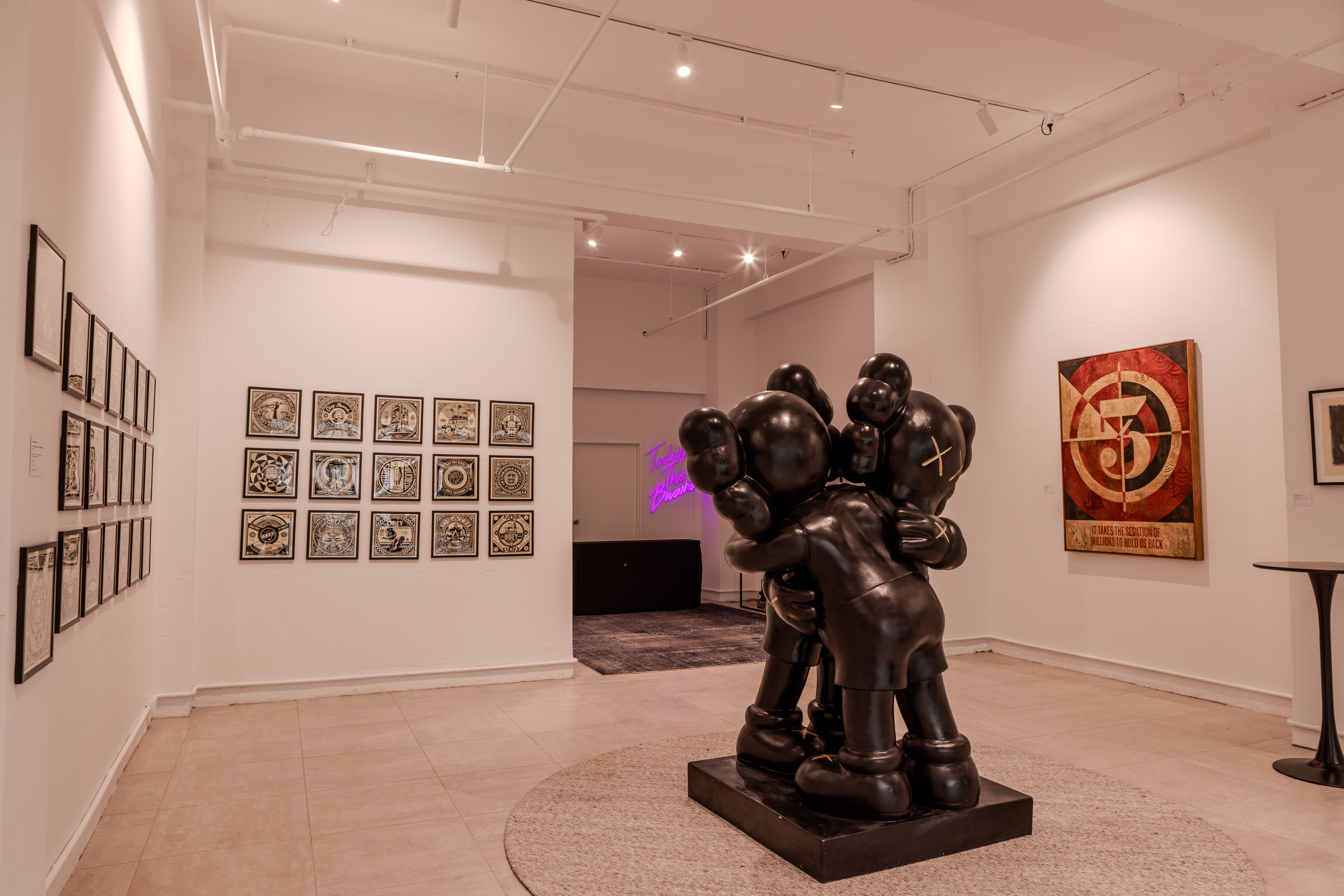 Gallery Brave’s launch came in the form of a Shepard Fairey exhibition, an American artist, activist, and founder of OBEY Clothing. His collection, ‘50 Shades Of Black’, features album cover designs inspired by the 12-inch record cover format.