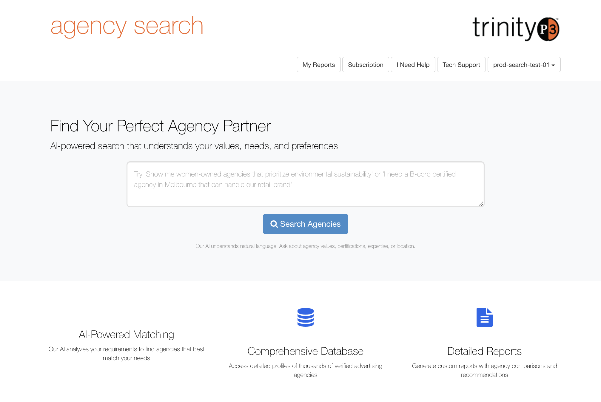 The database, rebuilt across the past year, was previously only available to TrinityP3 staffers, and includes information on an agency’s size, location, and capabilities. Its agency intel spans creative, brand, media, PR, social, digital, design, research, technology, shopper, experiential, and event.