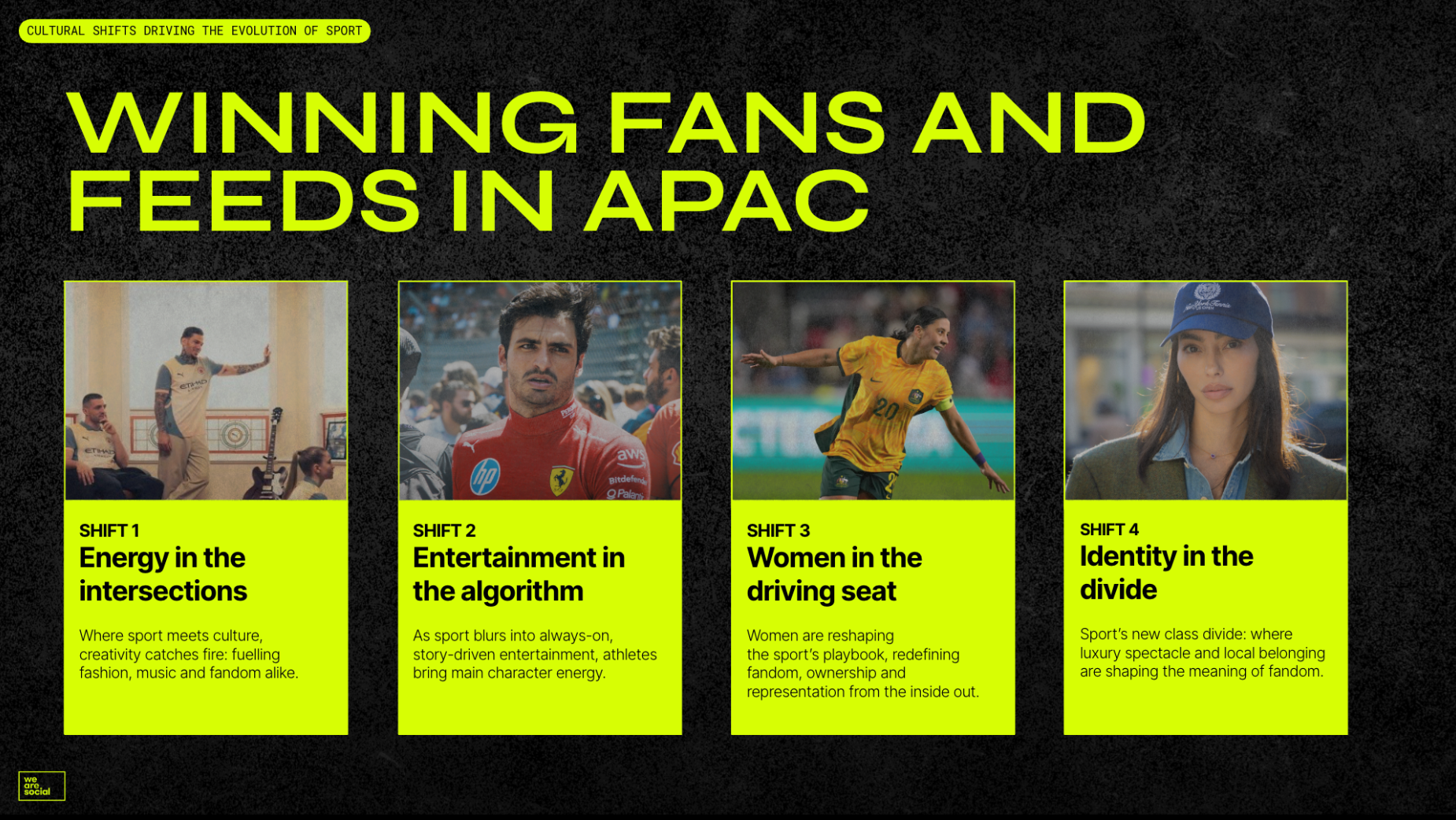 We Are Social, the socially-led creative agency, has released a new sports report, Winning Fans & Feeds in APAC, to help sponsors, rights-holders, marketers and broadcasters in the region understand the cultural trends driving the evolution of sport and fandom.