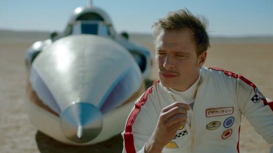 In the first ad, his attempt to break the land speed record pushes the rocket car to the point of exploding. The second spot sees him practice his tennis moves on the back of a blue whale, using its blowhole as a ball launcher.